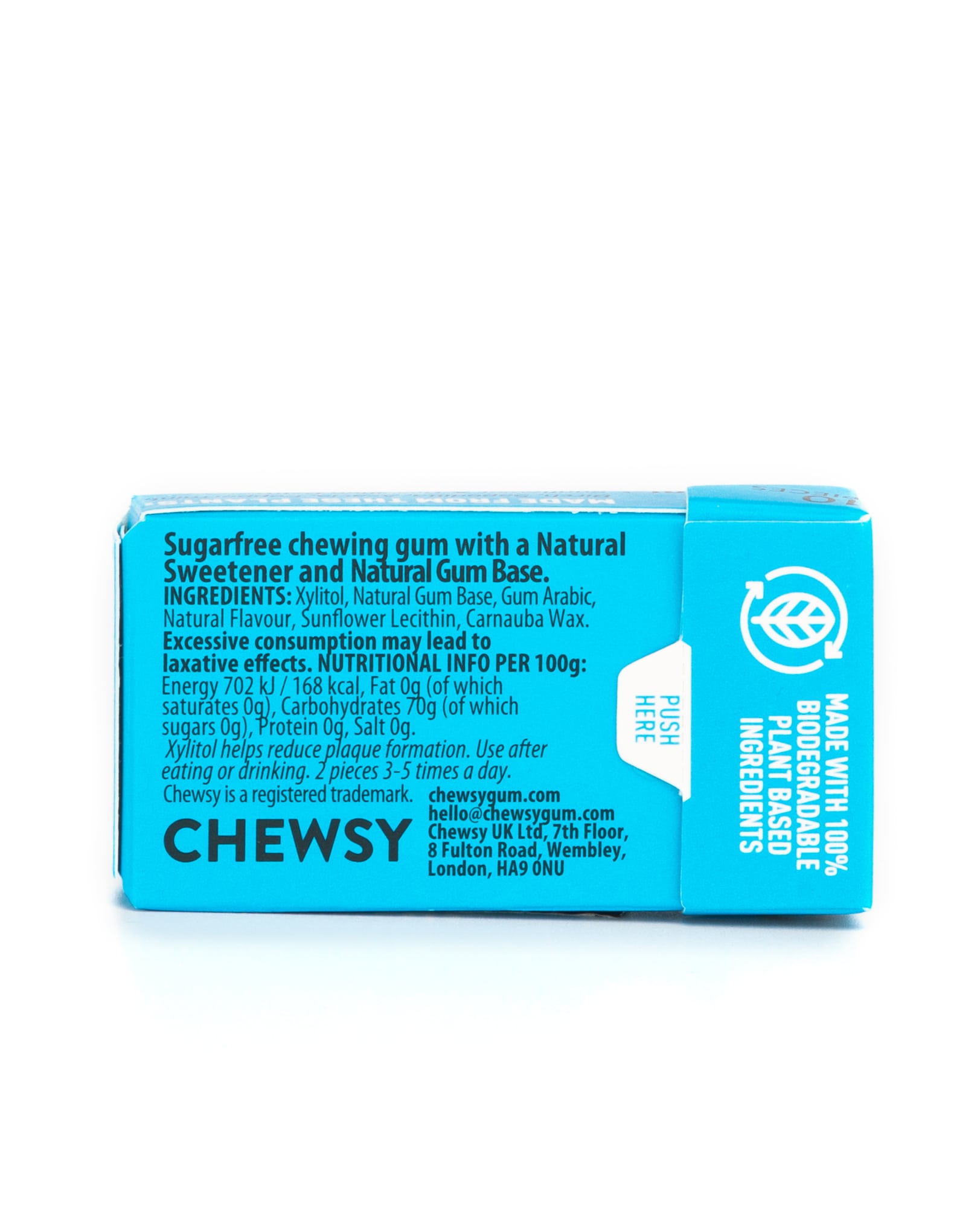 Savukārt Chewsy Gum ir izgatavota no 5 dabīgām sastāvdaļām, bez mākslīgajiem saldinātājiem, aromatizētājiem, krāsvielām vai konservantiem. Tās pamatā – dabīgais kaučuks (piensulas kaučukveidīgo, galvenokārt tropisko augu, sastāvdaļa).