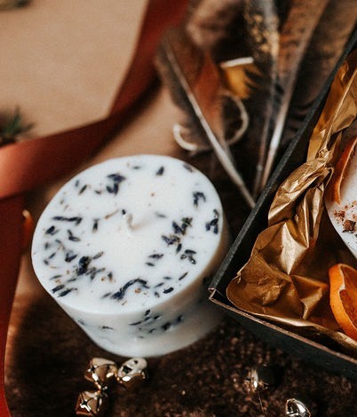 GardeniaEco svece “Lavanda” ar žāvētiem lavandas ziediem, lavandas ēterisko eļļu un rapšu vasku.