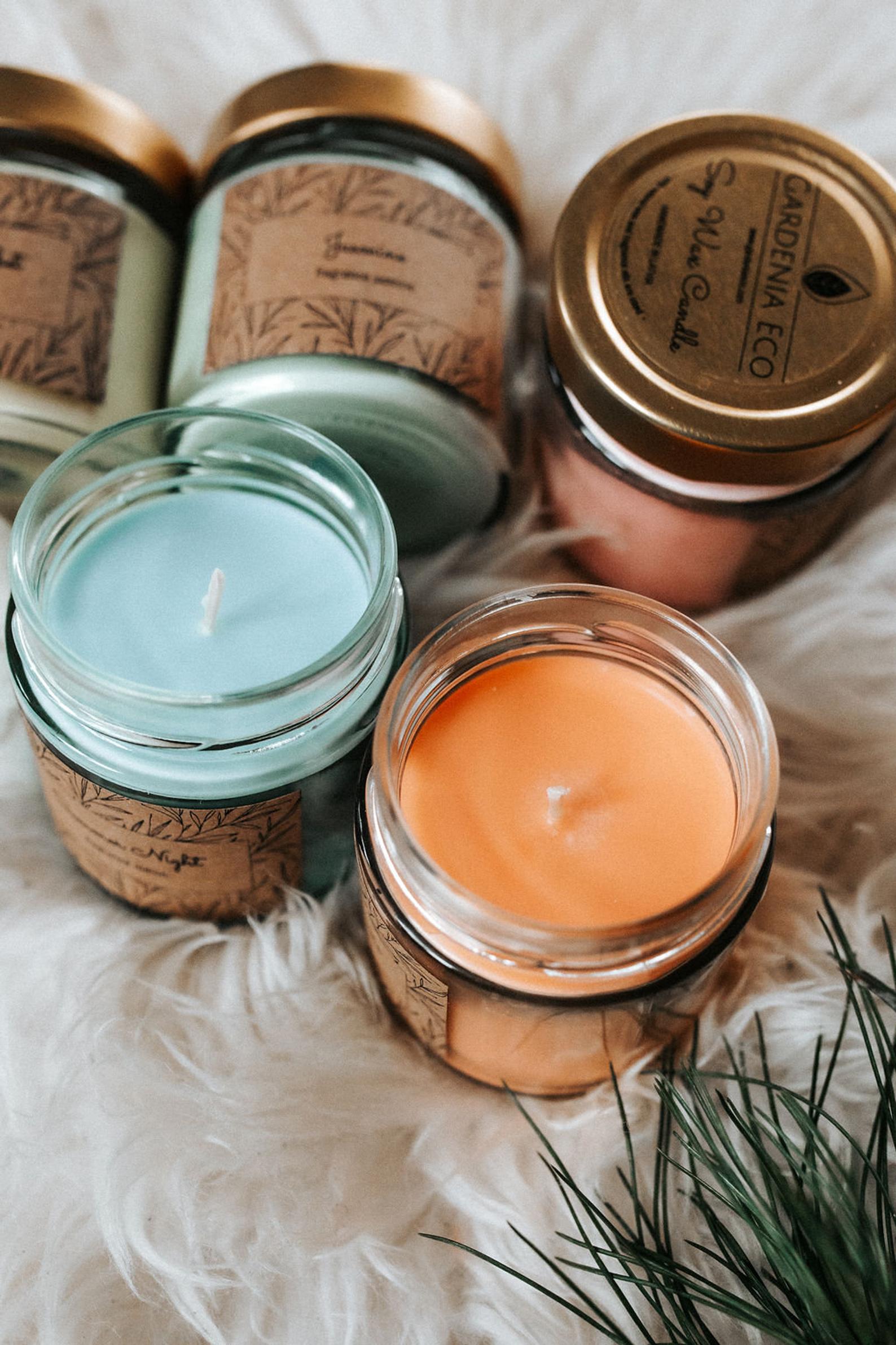 Aromātiskā vaska svece stikla burciņā, jasmīns