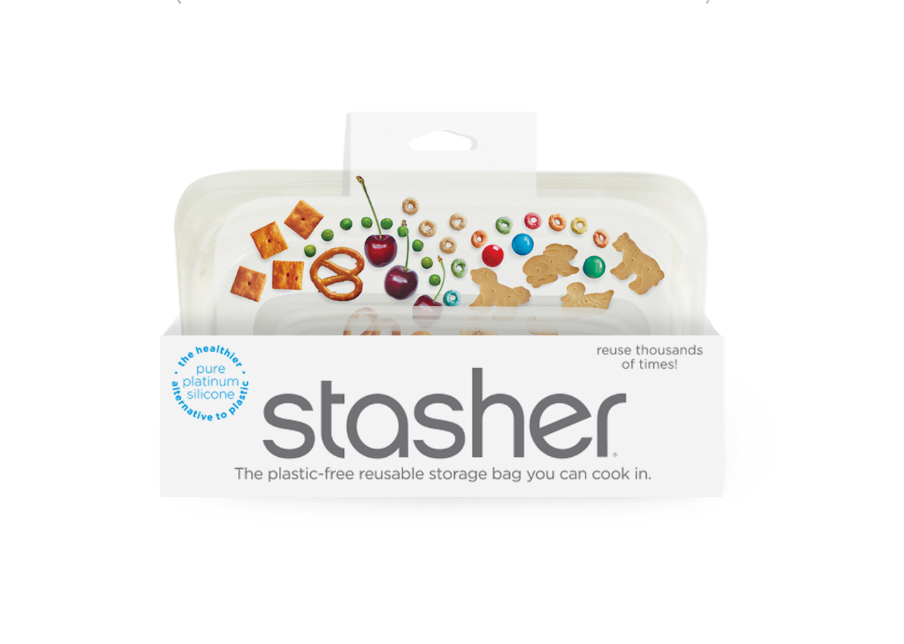 Izgatavots no 100 % dabīga, ar platīnu apstrādāta silikona, Stasher ir piemērots pārtikai, izturīgs pret temperatūru un ilgmūžīgs, tajā pat laikā tas nesatur BPA un BPS un neizraisa alerģiju, tāpēc tas ir drošs cilvēkiem un planētai.