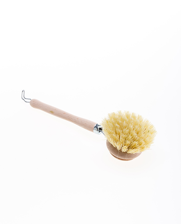 Trauku mazgāšanai paredzēta birstīte, kas darināta no neapstrādāta dižskabārža un tampico šķiedrām.